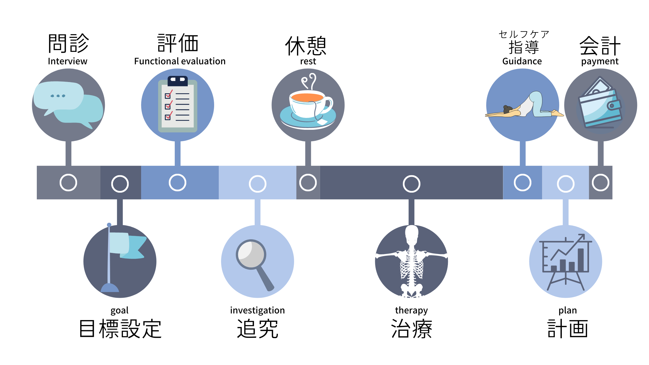 問題点が改善するには何度か来院していただくため、患者様の目標の達成に必要な期間(日数)や時間をご説明させていただきます。