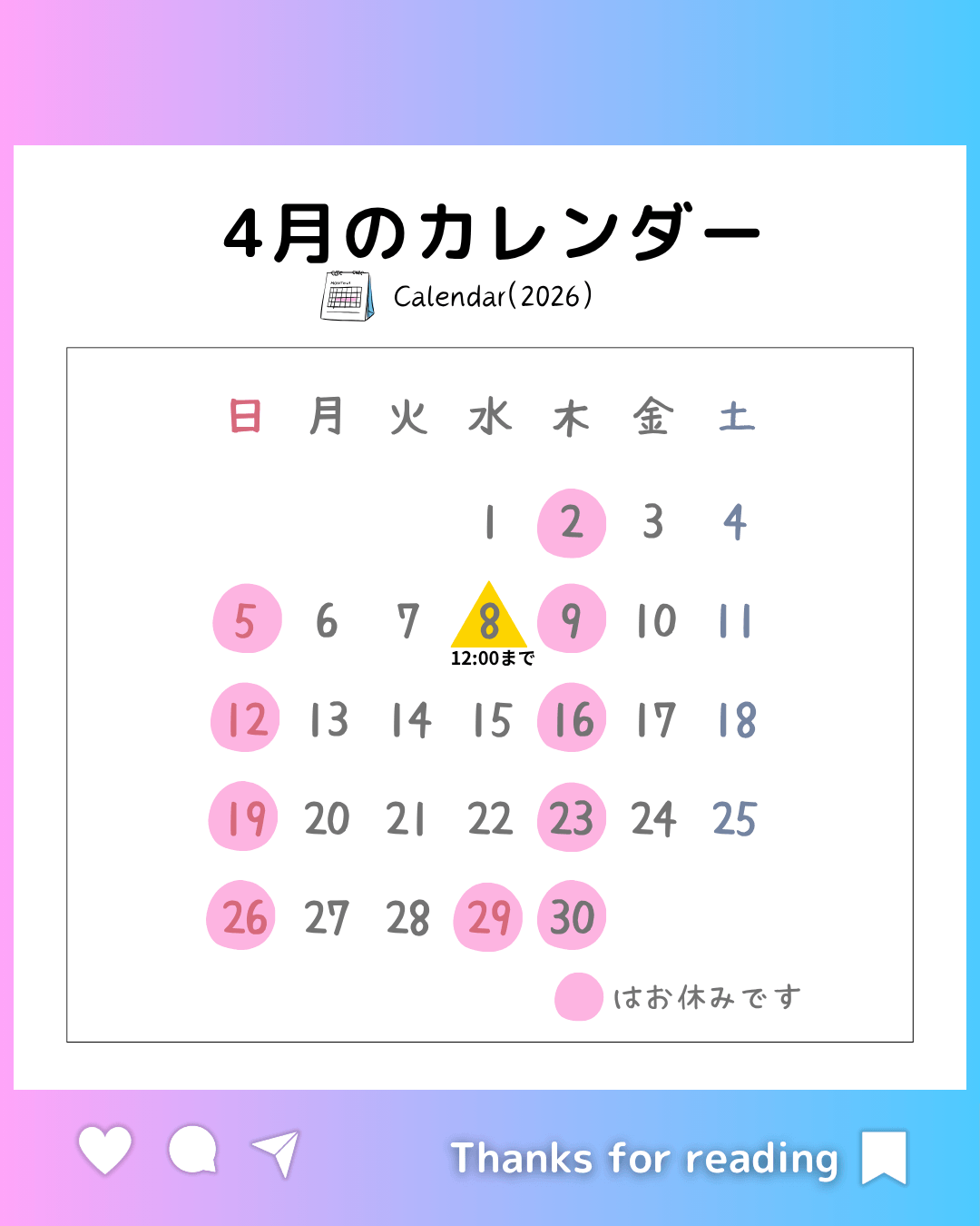 4月のカレンダーです